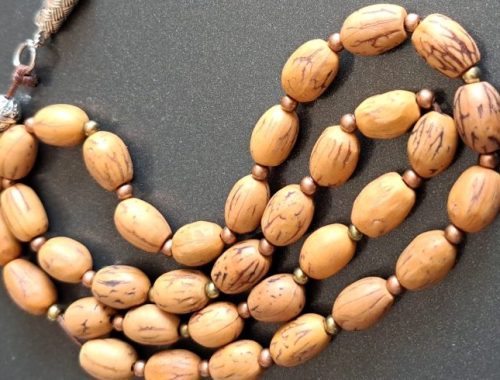 Tesbih yapmaya karar vermem planlı bir iş değildi. Üç yıl önce zeytin çekirdeklerini amaçsızca biriktirmeye başladım. Kavanozlar doldukça “bunlardan ne olur” diye düşünmeye başladım. Önce taş gibi sert çekirdekleri küçük bir maket duvar örmekte kullandım, ama gönlüm el vermedi, güzel…